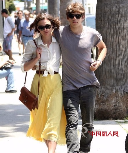 强劲的复古风潮仍在继续,将白衬衫在腹部打结,搭配亮色长裙,棕色腰带及同色系的复古包,宛若70年代招贴画中走出的女郎。
