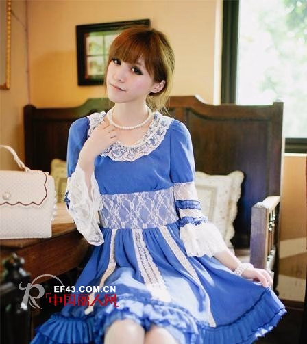 宝蓝色蕾丝花边雪纺洋装,领口、袖子和裙子上都用了许多不同的蕾丝花边,超级精致,让人爱不释手哦。YY本身也非常显瘦,上身效果惊艳,如果你够胆量尝试它,又懂得如何搭配它,一定非常耀眼夺目哦!