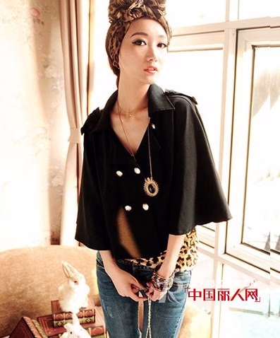 双排扣斗篷小外套,利落有型的装扮修饰出绝佳时尚气质。上班或者逛街都可以完美穿搭。遮肉的造型,胖瘦妞都可以穿搭。