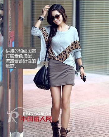 蓝色蝙蝠衫板型很宽松,遮盖了肉肉的手臂,让女孩子们可以自信出街不受身材困扰。大领口设计的衣身宽松却依附人体而展现,修长的款式对于身材的修正也有不可忽视的作用哦!本搭配豹纹这种熟女最爱元素,能完美的展现你的摩登风情。