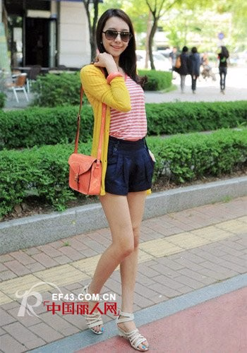 古董级三件套,在这个秋天就让秋天色彩占据一臂江山。藏蓝色短裤真的可以穿四季,橘色条纹背心提亮色彩,与落日黄针织衫增添暖色调,即使原色上身也不觉得多夸张!