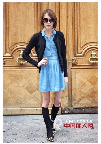 牛仔裙与开衫的组合,同色系深浅变化最易打造层次。修身效果立竿见影,真正入秋后套上五分袜更有味道。添加豹纹元素更丰富整身搭配。值得秋天一试!