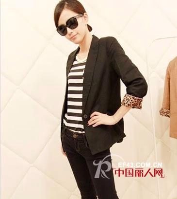 欧美棉麻西装,小豹纹使整体在低调朴素中透露出时尚感觉。