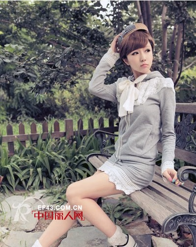 蕾丝拼接套装,上身是连帽拉链修身外套,非常修身的版型,很显身材。灰色低调沉稳,经典的色调是今秋女装主打的色系,蕾丝袖口与领口的拼接,甜美可爱,做个精致,下身搭配同色系蕾丝边短裙,非常清甜可爱的装扮,超有淑女气质。