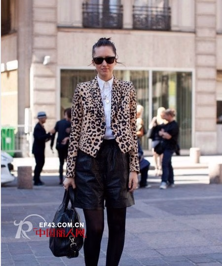 豹纹小外套西装,超有气场,黑白配,白色衬衫,黑色高腰皮质短裤,让你混搭出欧美范超有气场