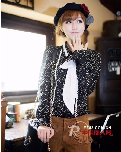 黑色波点飘带蝴蝶结宫廷衬衫,温柔儒雅的宫廷风设计,有着华丽的灯笼袖还有荷叶边,是一件很精致的小衣服。领口的蝴蝶结是纯白丝绸色丁制成很柔软飘逸。搭配蛋糕裙,甜美可爱,搭配短裤,休闲时尚。