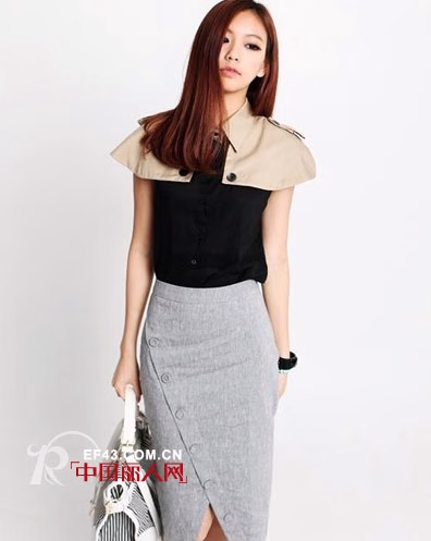 这款拼接衬衫,简单小斗篷的设计,别具匠心,很有个性,对于宽肩MM来说,这款非常显瘦。黑色修身版型,更是显瘦最佳单品。搭配半身裙,超有女人味,时尚优雅的气质脱颖而出。
