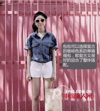 经典的牛仔不是一定要和牛仔搭,这个思想要去除,做旧的感觉映衬了当季的复古热潮,纯白的热裤没有丝毫装饰,也正式因为这样才能和牛仔相互映衬来显示它们彼此的魅力。这样的装包就不要穿高跟鞋了,太不搭配了,从箱底里拉出你老旧的球鞋其实也是很棒的。