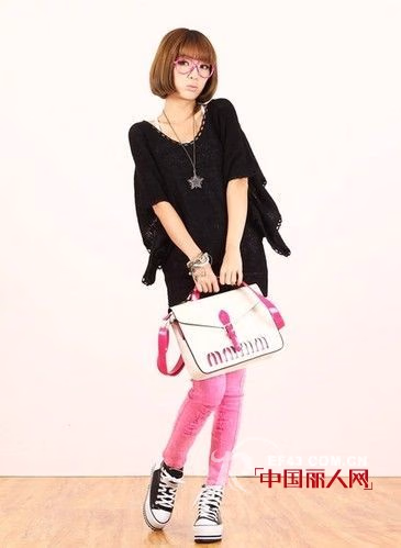 黑色罩衫是最基本的显瘦单品,混搭起来也很方便,唯一的不足就是会有些显老气,配上亮粉色窄脚裤显瘦又提亮,嫩嫩的糖果感觉就出来了哦!