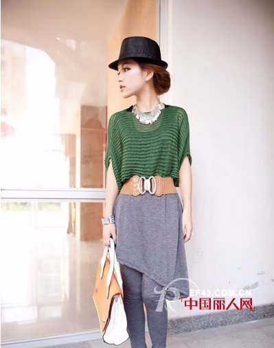 绿色的针织衫,非常有清新的特点,宽松的版型,更加的显瘦修身,可以搭配裙子或裤子,超时尚自然的风格,配上腰带,更显身材的苗条与修长。图片中的搭配风格就很出彩哦。
