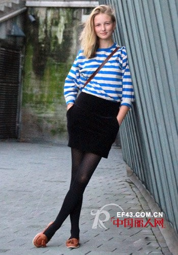 充满法式情调的蓝白海魂衫,将搭配单品选作高腰裙,极致混搭色彩。这一季蹿火的古着单品绝对是个亮点哦!无论鞋子还是包包都会很有型。