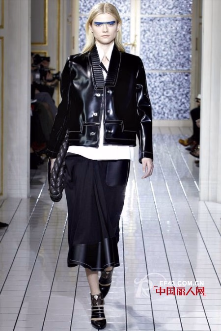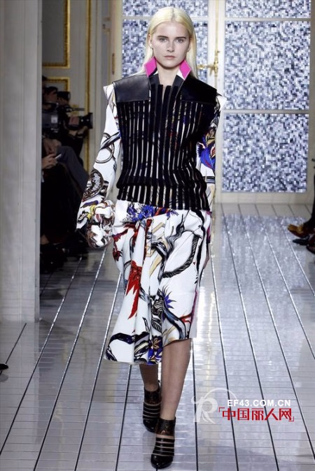 2011秋冬的巴黎世家 (Balenciaga) 女装在先锋、迷幻、超现实与稳重、实穿、贵族感之间找到了一个不错的平衡。宽松而挺括的茧形轮廓,独特的“麻花辫”皮革上衣,迷幻感花卉图案,大面积的直线型几何色块冲撞巴洛克风格漩涡图案……设计师尼古拉·盖斯奇埃尔 (Nicolas Ghesquière) 用他奇特的构思展示软与硬、轻与重的对比和夸张的体积感。