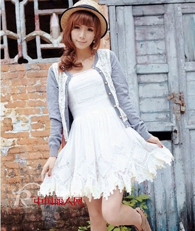 灰色蕾丝边小开衫,珍珠纽扣清甜唯美,对称蕾丝的设计,更是甜美可爱。内搭蕾丝边连衣裙,超有小公主的感觉,修身版型更显苗条身姿,充满了女性柔美温婉的气质。