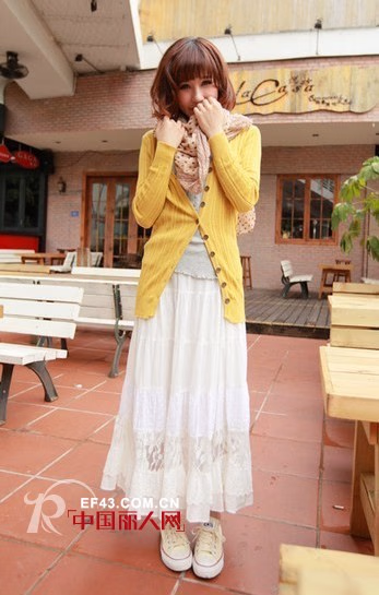 中长款的针织衫,在秋季有着极高的实用指数,可以根据个人肤色、身高、体型去挑选出能够带给自己自信的那一款。纯色针织衫的纽扣一定要考究,普通的塑料纽扣会让形象大打折扣。