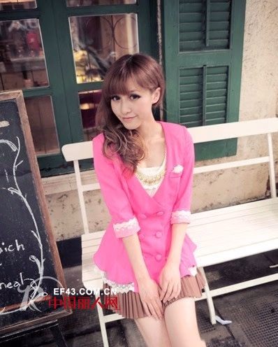 很修身的一款西装外套,红色很清新亮眼,蕾丝装饰的袖口甜美可爱,清甜的味道脱颖而出。搭配裤子或者裙子都很不错,超有甜美风格。整款透着浓浓的淑女气质,甜美的装扮令人心动。