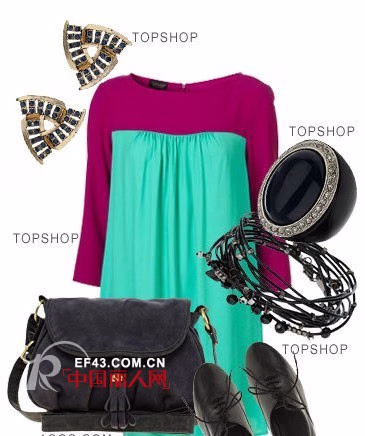 荧光拼色连衣裙 TOPSHOP