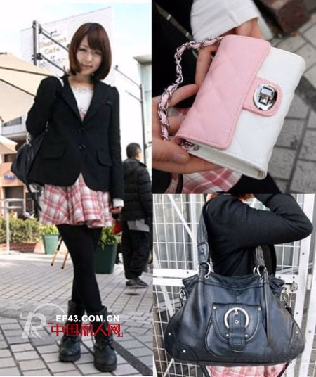 粉色格子连衣裙甜美可人,黑色小西服和丝袜,又妩媚动人。包包的装饰也至关重要。黑色铆钉两用包或者粉色小挎包都很合适。