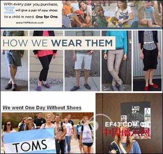 据报道,该公司采取每当售出一双鞋就捐赠一双汤姆鞋给小孩的独特做法,实践了他们的口号“ONE FOR ONE”。由于有多种款式可供选择,再加上这种理念的渗入,汤姆成为了世界鞋业著名的品牌。