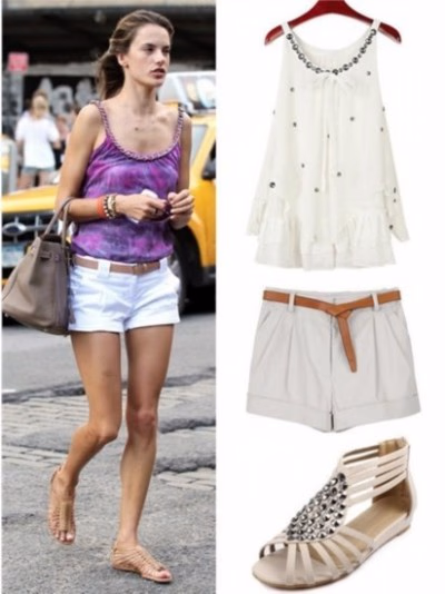 时尚单品:短裤、无袖衫、罗马凉鞋