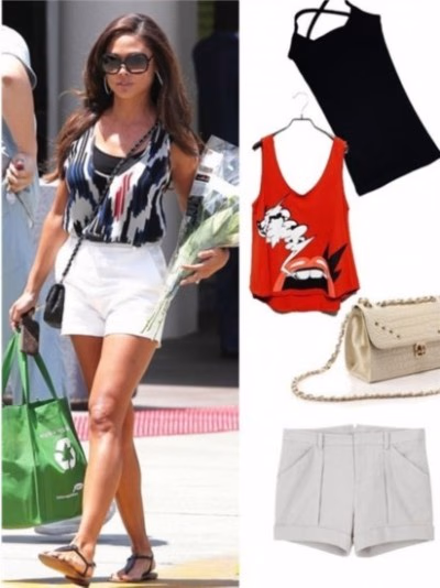 时尚单品:吊带、背心。短裤、链条包、太阳眼镜