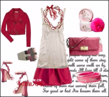 这款银红相配的肩带连衣裙非常独特,红色戴珠项链独具风情。有风的时候加上红色短外套就不怕风。搭配的时候一定要注意颜色,红色或银色包包,红色奢华高跟鞋,好心情都带着高贵的感觉~~