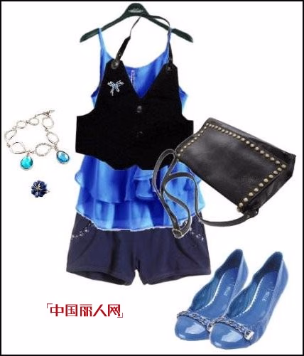 蓝色丝绸加长款背心加之以黑色小马夹,再配上黑色短裤或短裙,但这样的搭配还略嫌单调,蓝宝石项链给脖子带来眼前一亮的感觉。鞋子呢,当然要以蓝色或黑色高跟鞋为主~~相信这款搭配能让你在众人之间脱颖而出~~