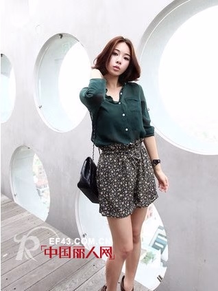 衬衫搭配裙裤的造型会显得有些正式,上班搭配也很有风度,碎花款裙裤的造型很甜美,带点日系风格的小可爱让你这身职业装看起来也不会很死板单调。