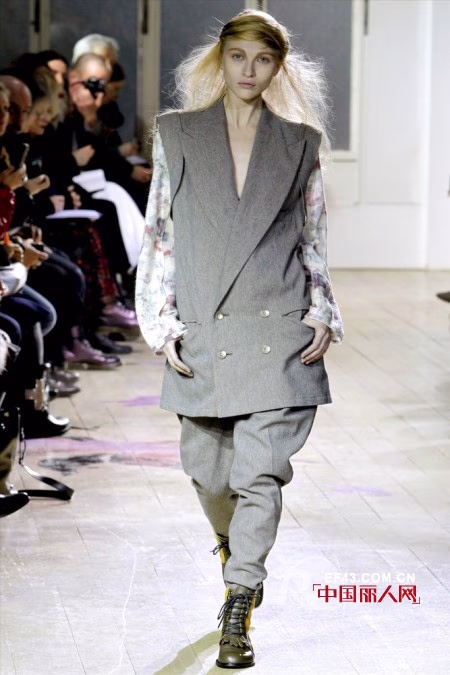 有其父必有其女!YohjiYamamoto才华横溢的女儿LimiFeu(akaLimiYamamoto)从2000年开始在东京办展。她的秋冬系列显然她受到了父亲darklooseshapes&romanticvision的影响,但其作品更融入了rockn’roll的风格。年轻的LimiFeu已经连续几季在巴黎为人们带来惊喜,虽然继承了父亲山本耀司宽大优雅的中性风格,但也不乏加入了更加亲和的女性化元素。纯熟的解构手法使得稍显平凡的格子套裙呈现出别具一格的另类面貌。