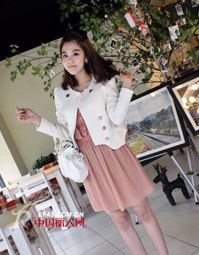 纯白色的精致短款小西服,纯净的色彩,给人以非常浪漫的清爽感觉,圆润的衣领,优雅感十足,衣身上采用了金属色彩的纽扣搭配,打造出迷人的宫廷风范,短线条的设计,更加的干练。