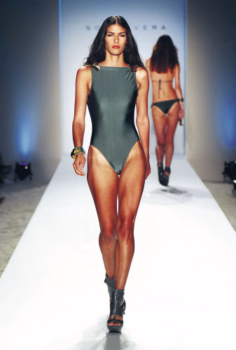 发布以酸洗的莱卡面料泳装开场,这是Diesel牛仔的传统标志,随后是同样更酷劲且臀部有细节装饰的泳衣,以及调整小皮带,固定臀部和游衣中腰部分。两件式泳衣、单肩游泳上衣及单比基尼式泳衣,是女性泳装外观的一部分,男性泳装有多种选择,从沙滩短裤,男式泳裤到速比涛泳衣,都采用不同的图案、材质和颜色。系列中的印花值得一提:一件满身印花的单比基尼式泳衣,图案由地平线和环绕棕榈树的直升机构成;其他令人喜爱的印花,如竖条纹航海两件式泳衣,带有蓝白色线条和黄绿色的细节,当然不要忽略在单肩泳装上衣上的天空伏特加酒的标志,以及一款男式游泳短裤上所带的相同的标志。另外的细节赛璐珞印花玩弄色彩对比,如黑白或白蓝色,以及三维的图形。Diesel标志性的生活方式被模特们自由发挥。秀演尾声部分,影星克里斯汀·卡瓦拉瑞穿着前卫型单比基尼式泳衣压轴,其泳衣前身以钴蓝色玻璃纤维菱形片覆盖,如同3D亮片,之后,所有模特伴着音乐的节拍,挥舞着有Diesel标志的牛仔旗子出场谢幕,一种热烈的氛围感染着在场的每名观众。