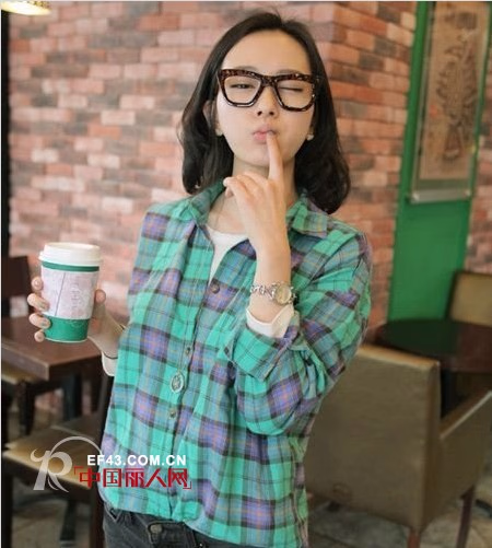 蓝绿色格子衬衫,格子一直备受衬衫青睐。格子衬衫的简约和大方一直备受MM和许多男士的喜爱,相信你的衣橱一 定会有一件格子衫吧!