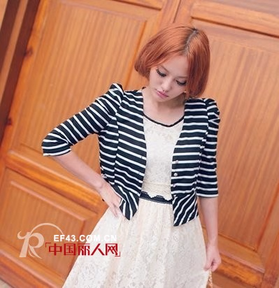 修身短款小开衫,黑白条元素是用不过时最百搭的元素哟,泡泡宫廷袖设计,很甜美秀气,非常的修身立体载剪,V领设计,可以搭配荷叶边或者蝴蝶结衬衫配上蛋糕短裙,好仙女好美的哦。