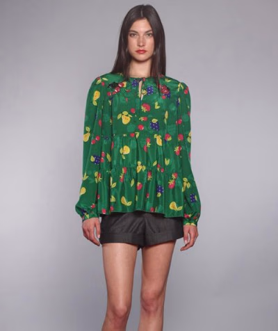 而安娜苏(Anna Sui)2012早春度假系列女装印花设计的特色之处在于,设计师于领口、于裤脚甚至于整条白色长裙,用镂空针织的方式将印花图案精美呈现,针织的精致繁复、镂空的若隐若现带来新颖美妙视觉感受的同时,让你轻松变身清新唯美派的森林系女孩。樱桃水果印花在上一季大获成功,于是这一季我们得以享受更为盛大的水果盛宴:香蕉、葡萄、草莓、梨子等水果印花在安娜苏(Anna Sui)2012早春度假系列女装的长裙、T恤、包包中大量出现,让你轻松变身元气水果女孩。