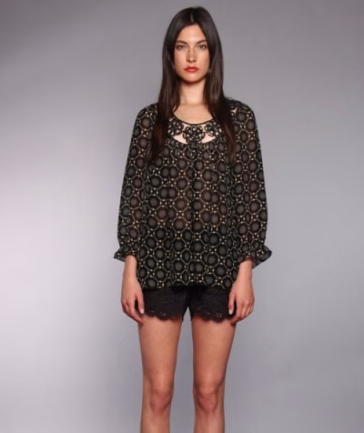 安娜苏(Anna Sui)2012早春度假系列女装,以著名室内装潢大师David Hicks的巴黎实体店为灵感,延续着安娜苏(Anna Sui)招牌的印花设计。花朵印花、波普印花、装饰印花……或给黑色连身裤带来青春可爱的气息,或给黑白迷嬉长裙带来别样异域情调,或给绿色连身裙带来梦幻唯美感觉,或给橘色薄纱上衣带来浓浓民族风情。