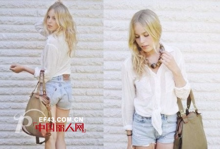 时尚解析:白色的轻薄长袖衬衫,短款设计,腰间绑个结把身材比例系出来,搭配牛仔短裤,帆布鞋,让你更有休闲的混搭味。