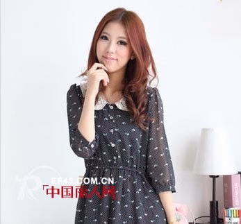 充满精致小细节的雪纺连衣裙,清新淡雅的素色款,搭配外套的好帮手,半开扣带来学院风,精致的镂空花边娃娃领是今年的大热门哦!