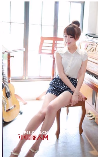 简洁的白色雪纺衬衫搭配波点高腰短裤,外加一双白色高跟凉鞋,高挑气质OL轻松打造。