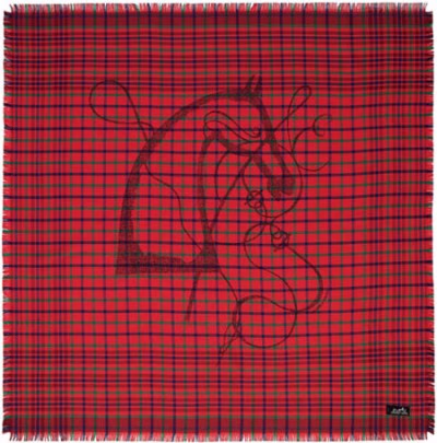 本款方巾的灵感来自爱马仕典藏的一款马毯,在吸收了苏格兰格子呢精髓的同时,又对其进行全新诠释。方巾所用的轻质真丝是向英式领带编织工艺的致敬,上面套印有一个别具风格的马头,同时配以流苏装饰。“爱马仕涂鸦”(Graff Hermes) 90厘米斜纹真丝方巾
