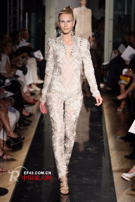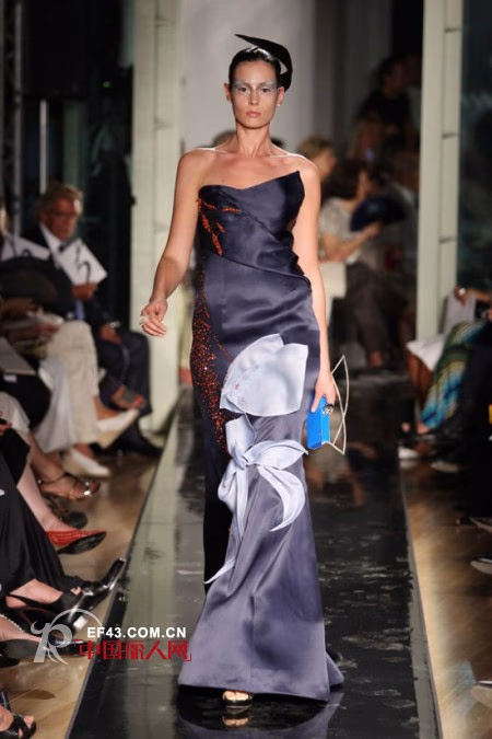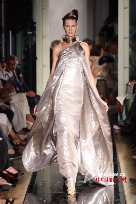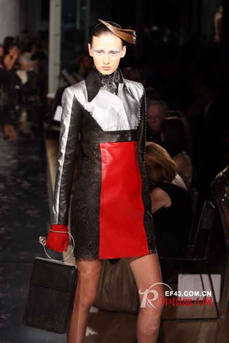 FAUSTO SARLI 2011秋冬系列算是比较突出个性的时装周示,设计师用大量的解构主义丰富了时装的特色,时装上面增加了半圆形和圆形后,变成了一个个立体的建筑物,原来时装不仅是可以作为遮羞的工具,它也同样可以成为一件艺术品,比如圆形的白色斗篷、环形的披风、立体感的拖地裙摆,这就是设计师将面料重新以一种新的硬材质添加后,这种解构主义才能够在时装上体现,同时设计师还将一些不规则的条纹制造成各种图案点缀其中,而最后几款优雅的晚装也是采用不对称感,适当的裸露女性最迷人的部位,将优雅与大气展现得淋漓尽致。
