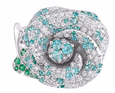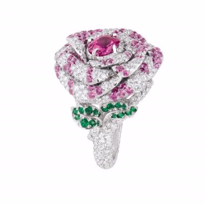 玫瑰对Dior高级珠宝有着相当的份量。今年,迪奥之花为Victoire de Castellane的Bois de Rose珠宝系列,提供无尽、辽阔的灵感。她以白钻或彩钻配衬Rose Dior Bagatelle戒指;在Rose Dior Pre Catelan珠宝系列中大胆采用珊瑚、缟玛瑙、玉髓及粉红水晶;甚至在Precieuses Rose珠宝系列里利用玫瑰环绕着置中的宝石。不过,今次的灵感,并非源自花朵本身,而是它的茎部,Victoire 解释说:“玫瑰梗缠绕着手指,令珠宝散发柔情诗意,就像浪漫的宣告或永恒的爱情象征。”