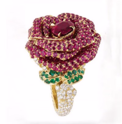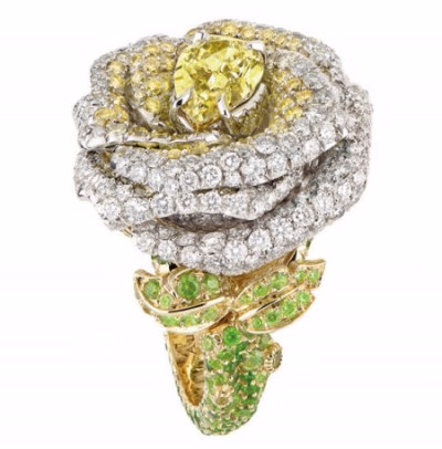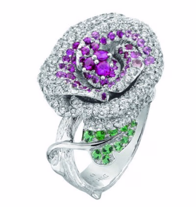 玫瑰乃迪奥(Dior)的经典象征。2011年春季,全新的迪奥高级珠宝Bois de Rose延续系列便以玫瑰主题为灵感,推出戒指、手镯及耳环。