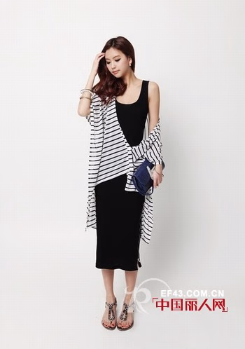 身搭条纹美一夏让你至少年轻5岁!超宽松的休闲连衣裙,袖口很大内搭浅色TEE最赞,宽松的版型不会显胖,前身超低胸设计加上下半部分微微有点收口的裙摆,很正的韩范儿让你美美过一夏女性|mgsrchttpsom连衣裙
