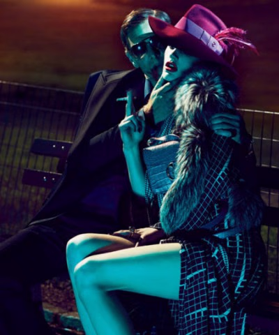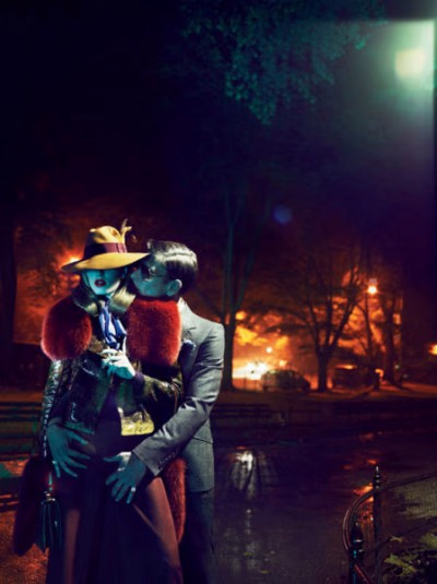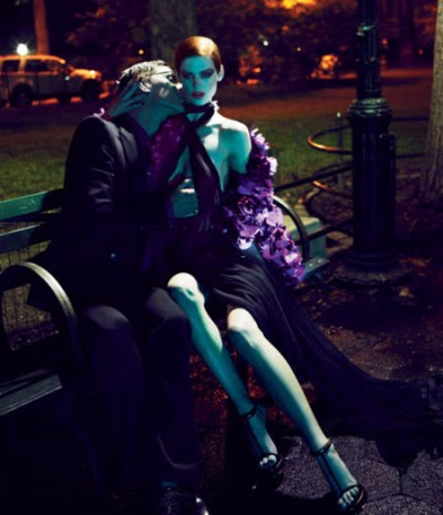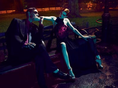 模特Saskia de Brauw 和Marique Schimmel 穿上最新系列的古琦(Gucci)高级时装,在摄影师组合Mert &Marcus的镜头下,在夜晚的公园一角上演充满挑逗色彩的声色戏码。