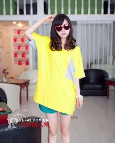 这款拼色宽松的T恤,亮黄色给人清新甜美的感觉,让人眼前一亮了。背后是灰色的拼接,设计很独特哦,宽大的版型更是遮住肉肉很好的选择了。搭配果绿色的短裤,达到撞色的效果,超级时尚了。