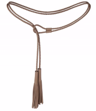 本款腰带如套索般流畅柔软,二重编制的皮革带环绕腰部,端部绒边的摆动让您的每一步都潇洒夺目。