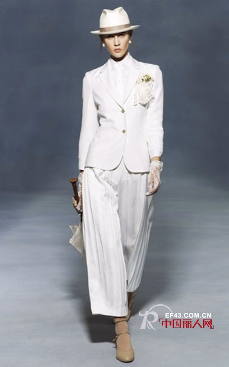 难能可贵的是,设计师成功地将这种气息融入进女装的早春时装的设计中,一种复古的度假风情扑面而来,让人不禁想起20世纪早期富裕的绅士们的慵懒而闲适的度假打扮。