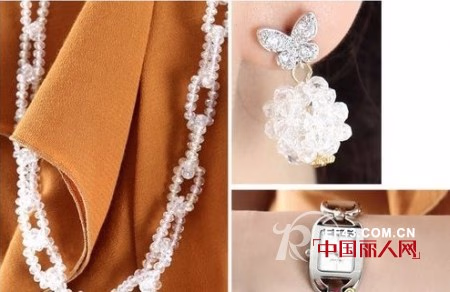水晶饰品搭配简洁的桔色连衣裙,更显魅力风采。