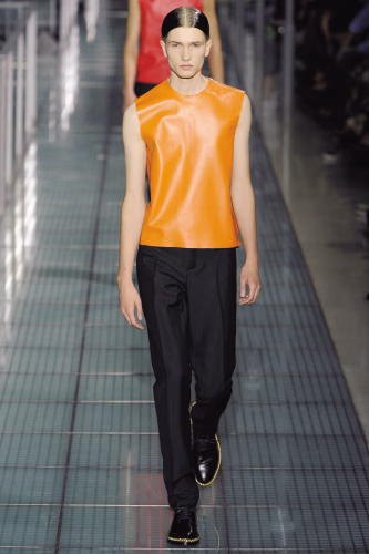 设计将上一季的某些想法中进行改进,新的包括聚焦于结构服装和连身衣上的裂缝,他还引入了剪切衬衣料、长手套和抽象的造型,用概念化的手法展现其对色彩的热爱。