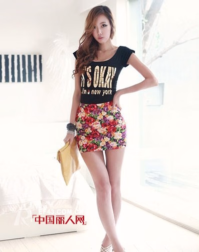 印花高腰短裙,高腰收腰的版型,显瘦显高效果很赞。浪漫印花搭配上深色系t恤,完美展现低调优雅气质,小奢华感的浪漫美搭。