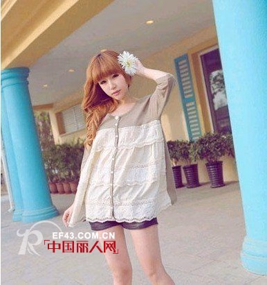 这款拼色雪纺衬衫,三层并列的蕾丝边,很可爱甜美哦。拼接色时尚唯美,设计独特,宽松的版型不挑身材了,搭配短裤瞬间变高,很不错哦。